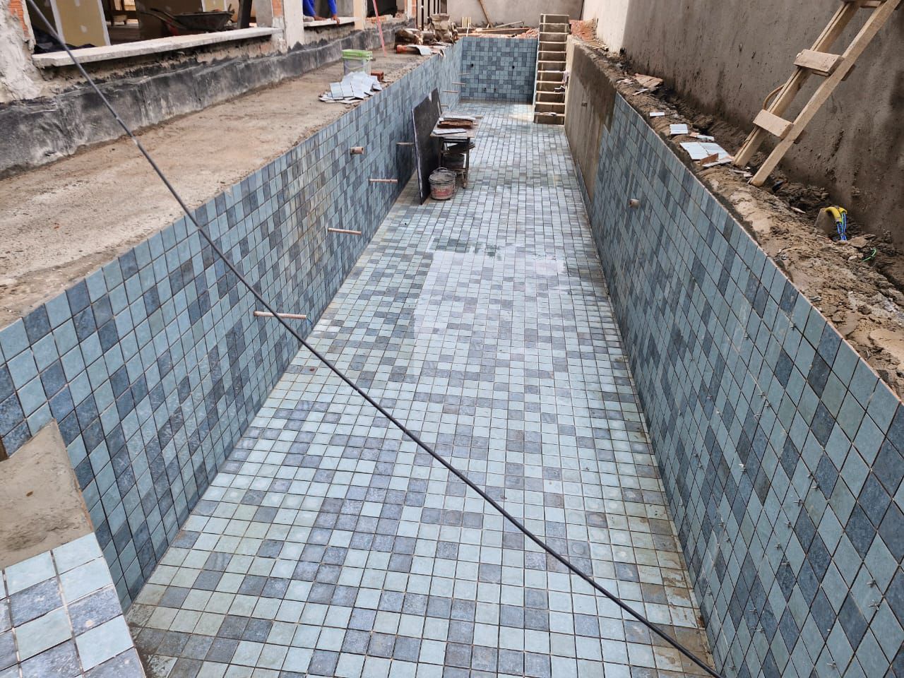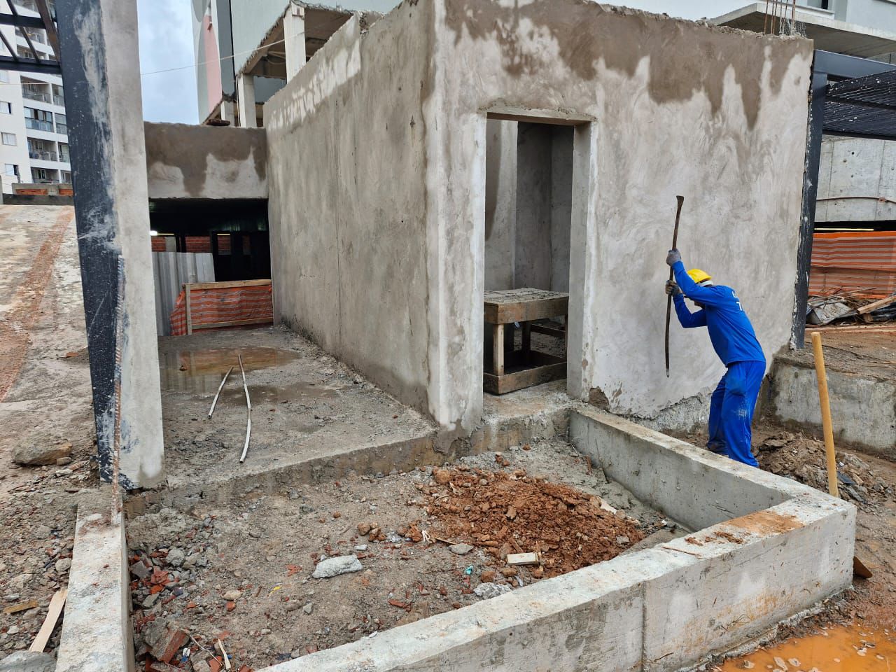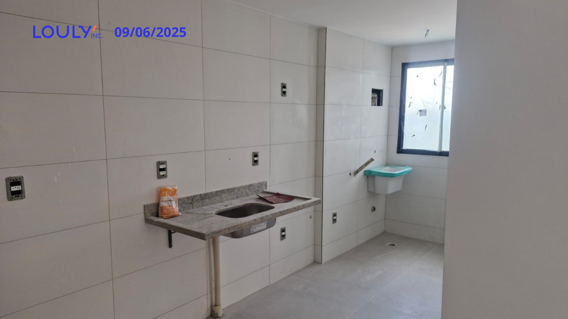 - Parede em “L” da cozinha/área de serviço, e todas as paredes dos banheiros com revestimento cerâmico até o teto;